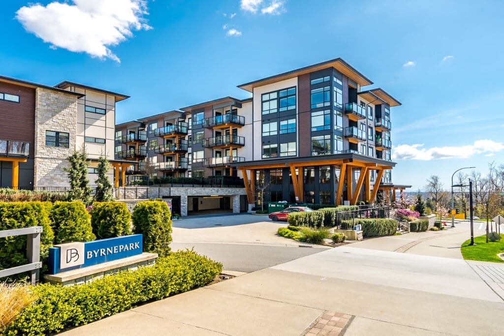 South-facing sub-penthouse at Byrnepark by Polygon, offering a spacious 880SF 2 Bed & 2 Bath layout. Features an efficient, open floor plan with 9′ ceilings and thoughtfully bedrooms located on opposite side for extra privacy. The primary bedroom includes a walk-in closet and spa-inspired ensuite with double vanity. Modern kitchen with stainless steel appliances, large island, and ample storage. Expansive windows bring in abundant natural light. Centrally located with easy access to Edmonds SkyTrain, Market Crossing, Save-On-Foods, Metrotown, Vancouver & New West. Steps to parks, trails, dog park, Rec Centre, golf course & more. Includes 1 EV-ready parking stall and 1 storage locker. School catchment: Taylor Park Elementary & Byrne Creek Secondary. Come see it in person!